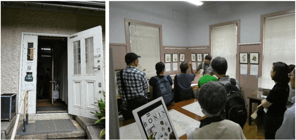 今回のフィールドワークの募集案内を見た際に、企画展のチラシにあった「BONIN x BOTANY」というキーワードにまず惹かれました。調べてみると、BONIN(ボニン)とは小笠原諸島の英語名(Bonin Islands)に由来し、その語源は日本語の「無人島(むにんじま)であること、また、BOTANY(ボタニー)は、英語で植物学を意味することから、「O」を重ねてBONINとBOTANYを十字に組合わせたデザインで「東京大学植物学教室の小笠原調査」を表現していることに感心しました。