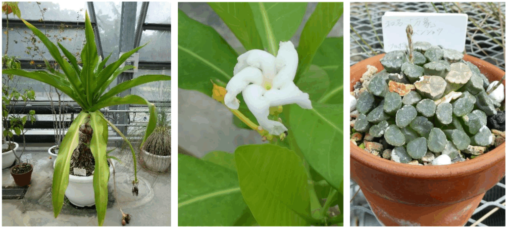 そして次に、小笠原諸島などの多種多様な植物が展示されている温室に入りました。ここでは、珍しい植物を直接観察しながら説明を聞くことができました。