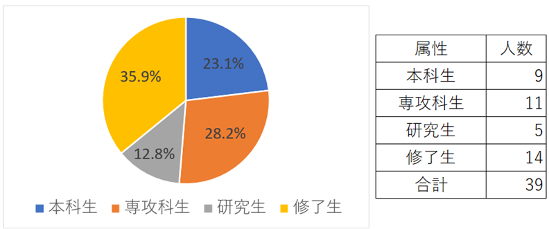 3.参加者:プレミアム・カレッジ生及び修了生を対象に受講者を募集し、図1の参加者で講座を実施しました。