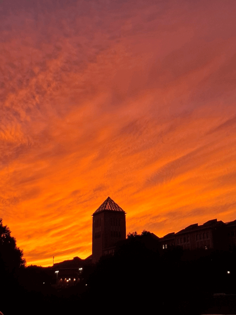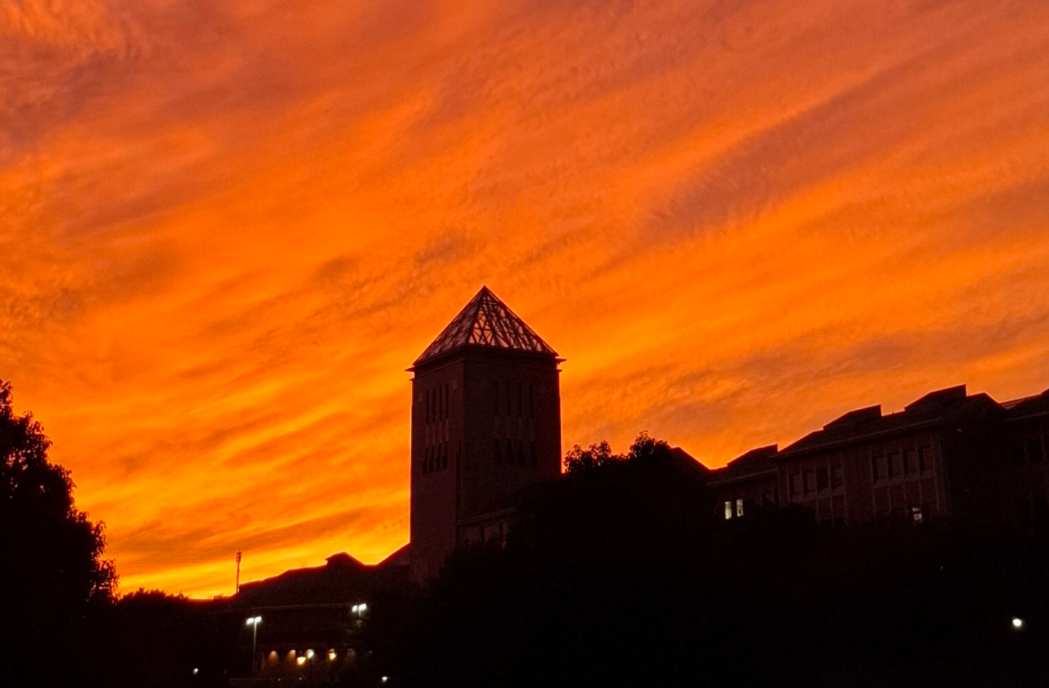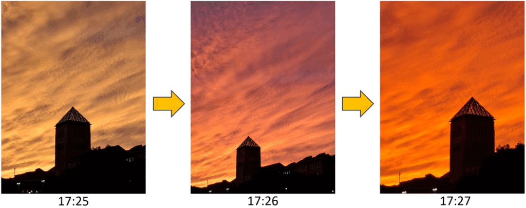 2025年の台風23号は10月9日に関東地方に接近しました。その前日10月8日の夕方、南大沢周辺では圧巻の夕焼けが現れました。東京都立大学南大沢キャンパスのシンボル「光の塔」と時々刻々変わりゆく夕焼けの様子をカメラに収めました。何人かの同窓生から是非ホームページにアップして欲しいとのご要望を頂きましたので、ここに紹介させていただきます。