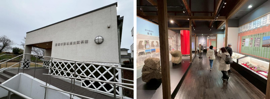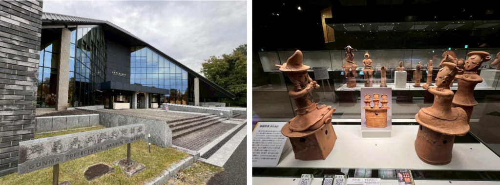 群馬県立歴史博物館(左)と古墳からの出土品の展示(右)