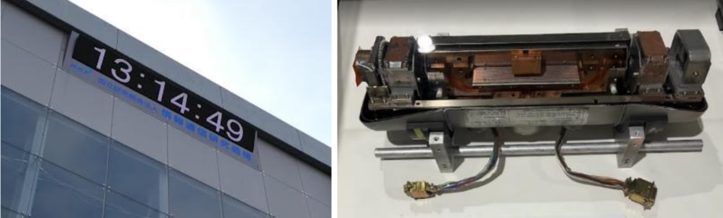 <左:訪問時の日本標準時 右:セシウム原子時計の心臓部>