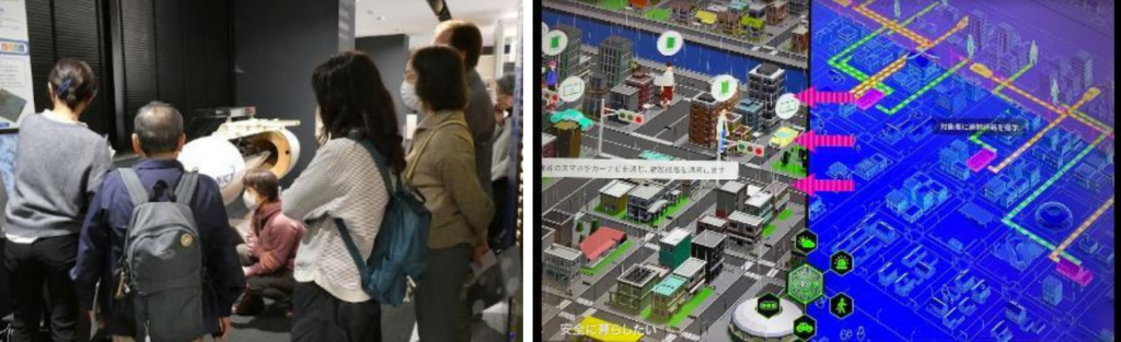 <左:解説に頷く参加者たち 右:Beyond5Gがつくる未来の街>