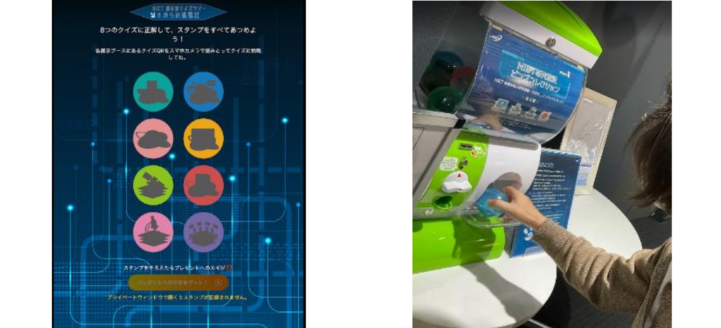 各ブースにはクイズが設けられており、全問正解するとNICT限定のピンバッジをゲット出来ます。知的好奇心旺盛なメンバーは、もちろんチャレンジ!