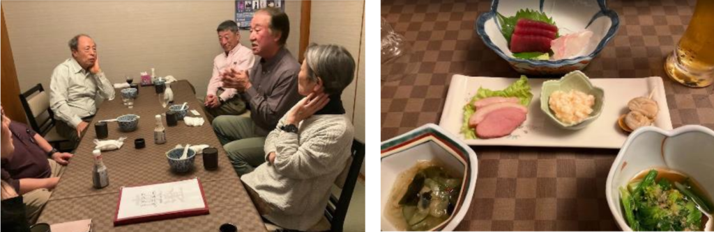 武蔵小金井駅近くの割烹料理店で行いました。2万歩近く、あるいはそれ以上歩いた疲れも見せず、近況や思い出話に花が咲きました。